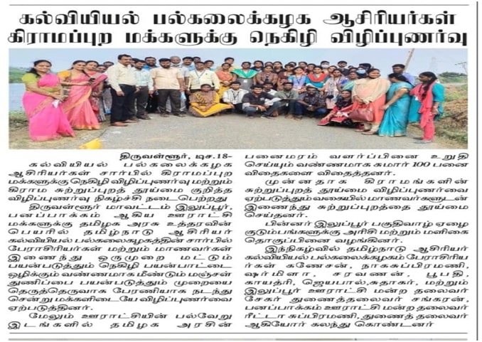 The University has adopted five villages namely Illupur, Panampakkam, Vishnuvakkam, Govindamedu and Ayathur in Thiruvallur District under Unnat Bharath Abhiyan Programme. The university served flood relief materials to affected families of villages during heavy rain.